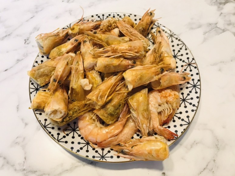 새우 머리랑 몇 마리 남은 새우로
