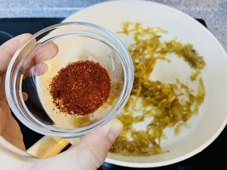 고춧가루 0.5스푼을 넣고 볶아주세요