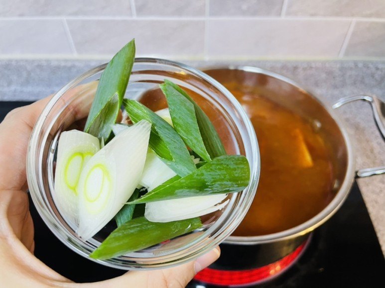 마지막에 파를 넣고 한소끔 더 끓여주면