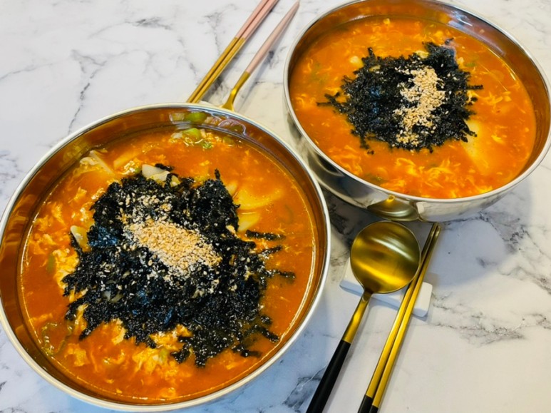 걸쭉하고 구수~한 장칼국수 수제비 완성이에요!