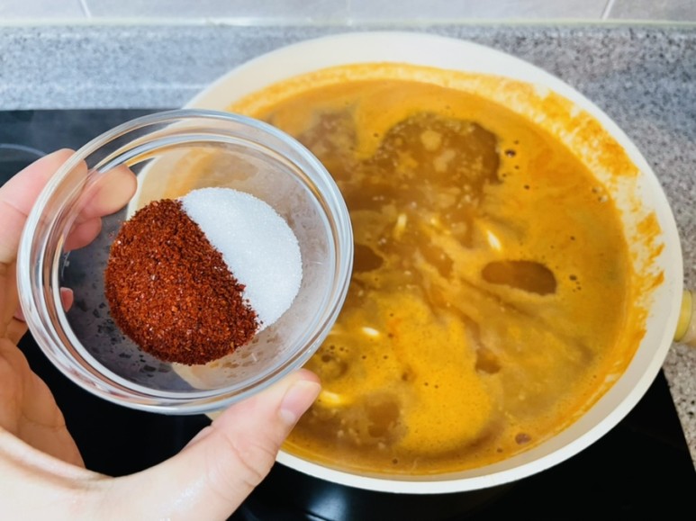 고춧가루 1T와 설탕 1t를 넣어주세요