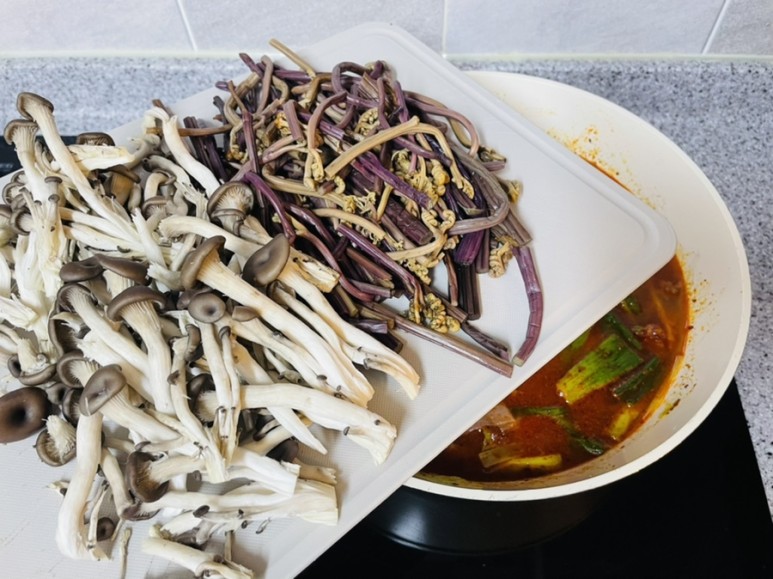 느타리버섯은 먹기 좋게 잘 찢어서 넣어준 후