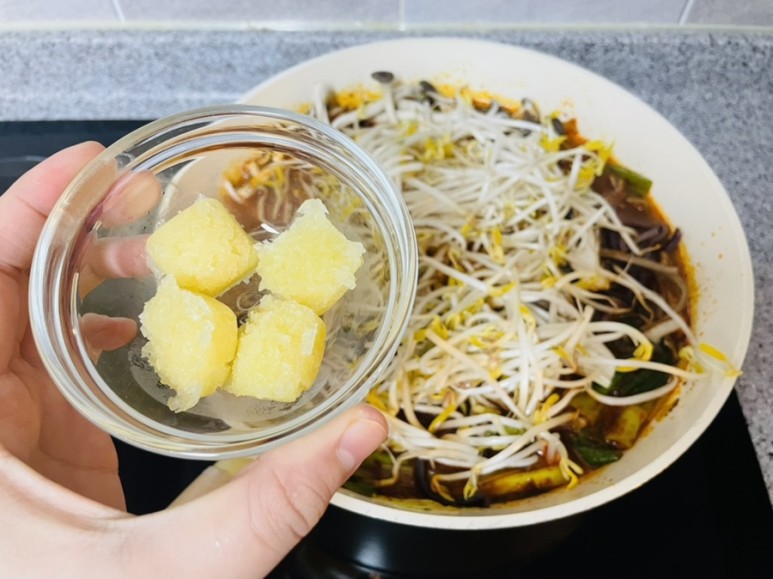 다진마늘2T를 넣고 한소끔 끓여주세요