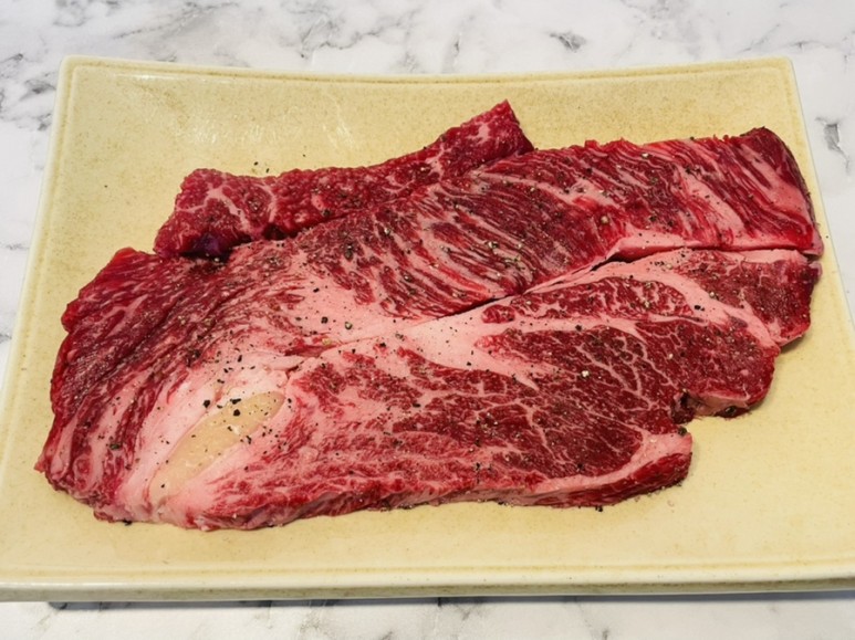 소고기에 앞뒤로 소금과 후추를 뿌려