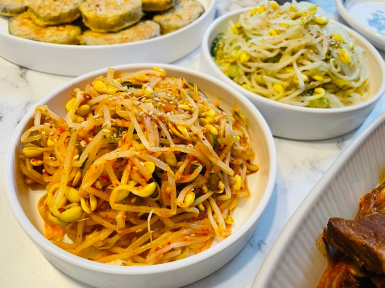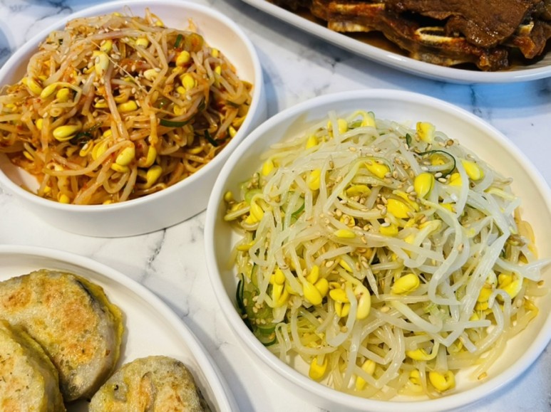 기본과 매운맛 두 가지 콩나물무침으로