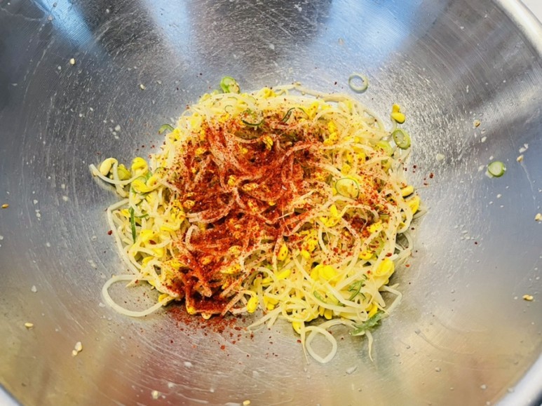 기본 콩나물무침에 고춧가루만 더해주면 매운맛인
