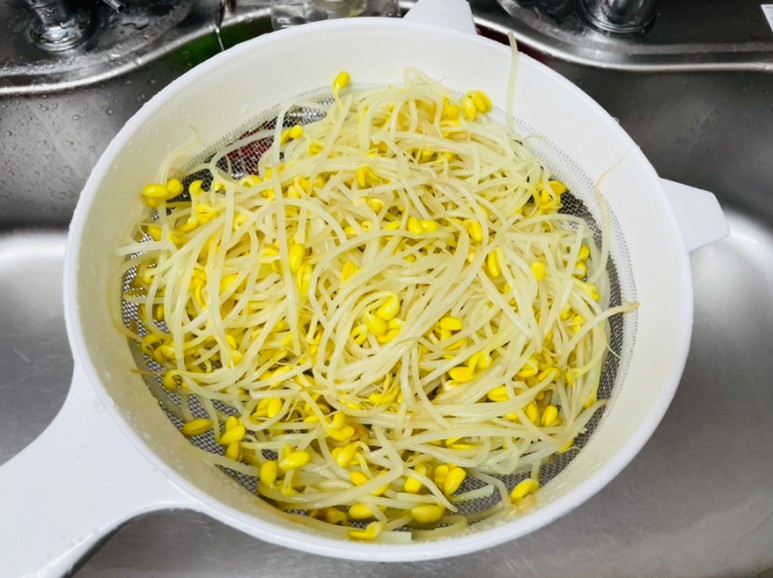 데친 콩나물을 건져 열기가 사라질 때까지 찬물로