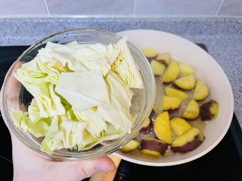 고구마가 익으면 양배추와 고추장 고구마 볶음