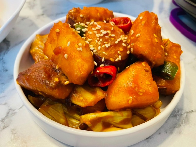 고구마 반찬인 고추장 고구마볶음이 나온적이 있길래