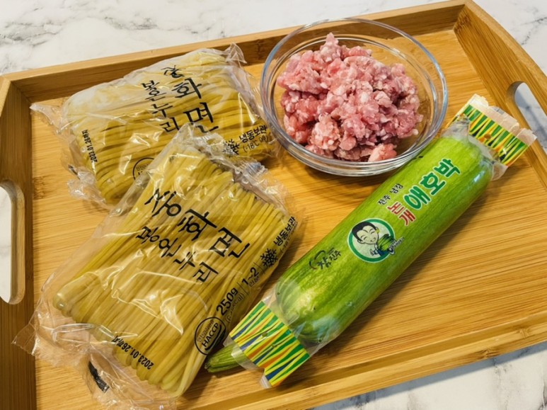 중화면 2인분, 돼지 다짐육 200g, 양파中 2개,
