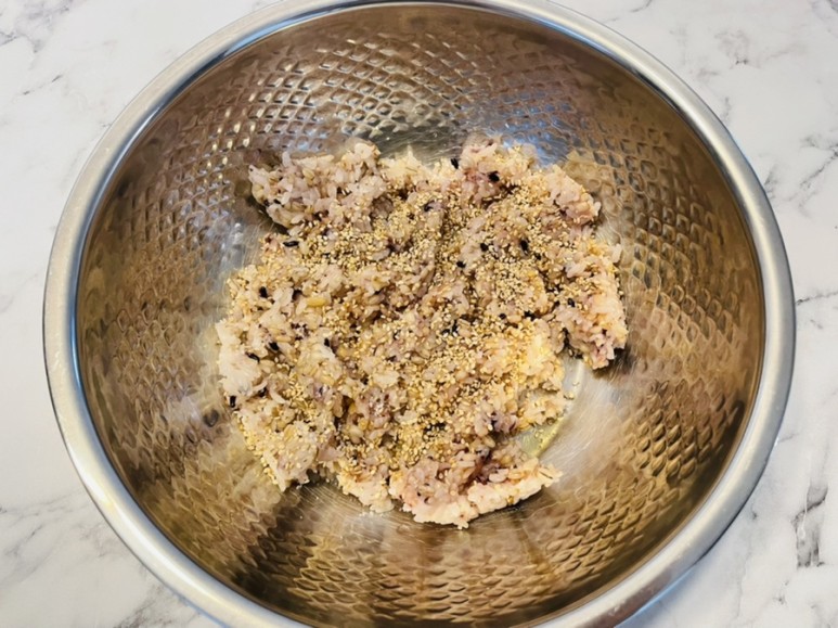 참기름 0.5T~1T, 깨 1T를 넣고 잘 섞어주세요