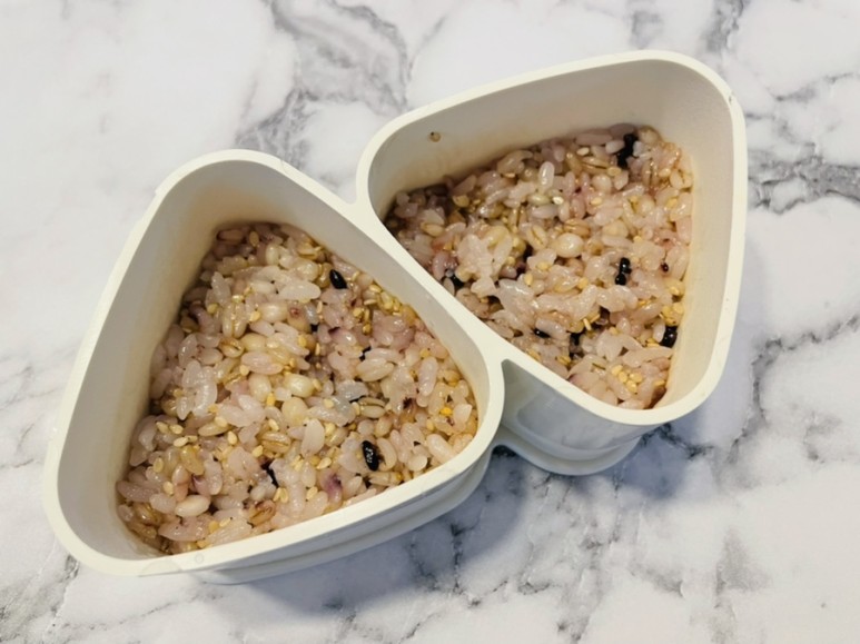 삼각김밥 틀 뚜껑으로 한 번 꾹 눌러주세요