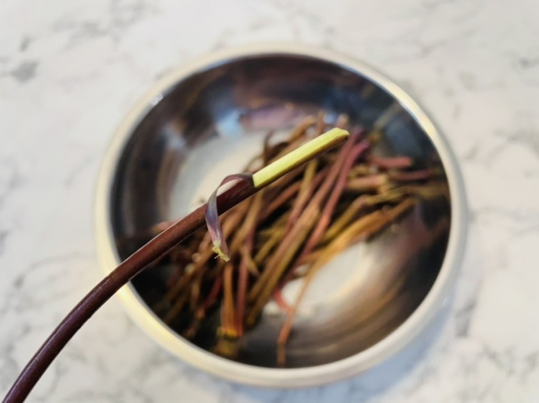 고구마줄기(고구마순)를 얇은 부분 쪽부터