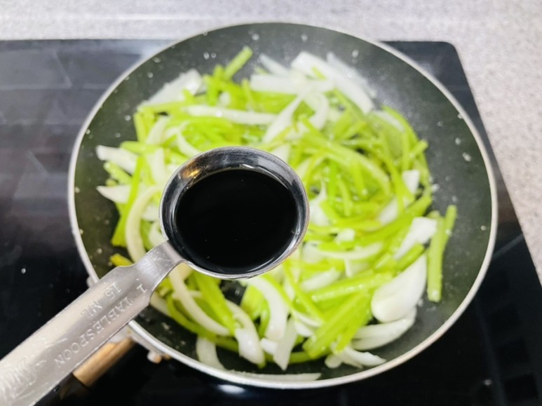 진간장 0.5T, 소금 2꼬집을 넣어 볶아주고