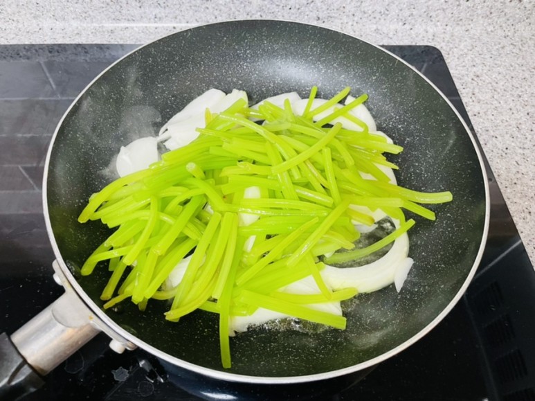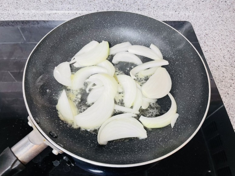 양파 中자 1/2개를 두툼하게 채 썰어 넣고