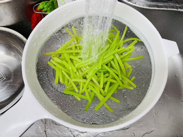 데친 고구마줄기(고구마순)를 찬물에 충분히