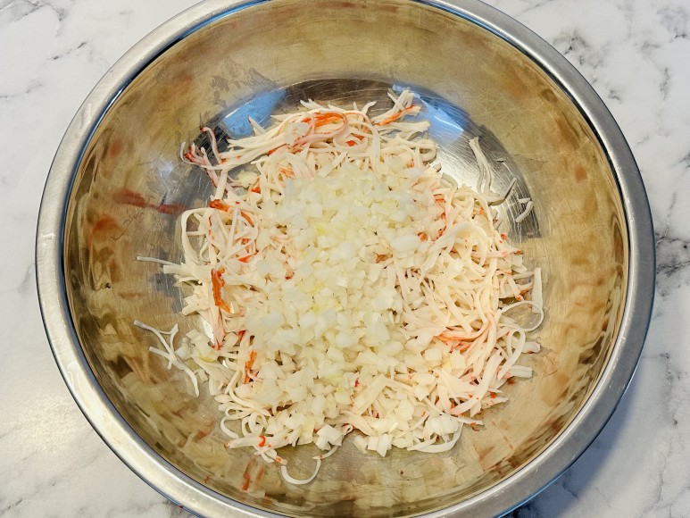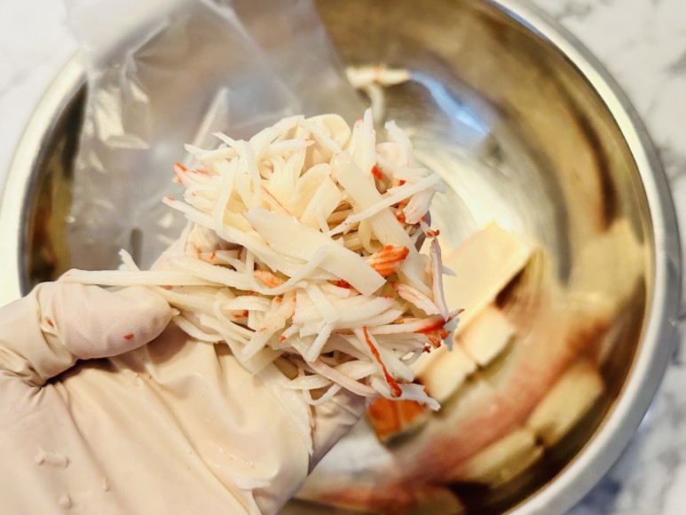 새하얀 마요네즈 크래미(맛살) 듬뿍 얹어서