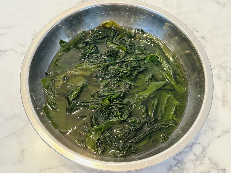 물기를 꾹 짜서 먹기 좋게 잘라주세요