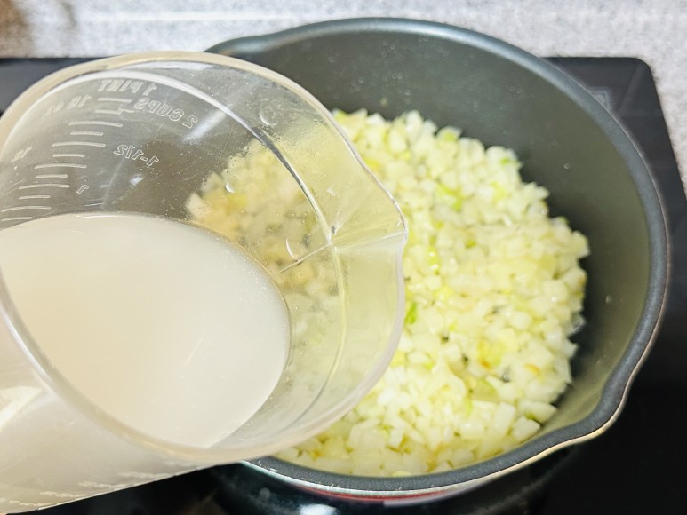 쌀뜨물 또는 물 한 컵(200ml)을 넣어준 후