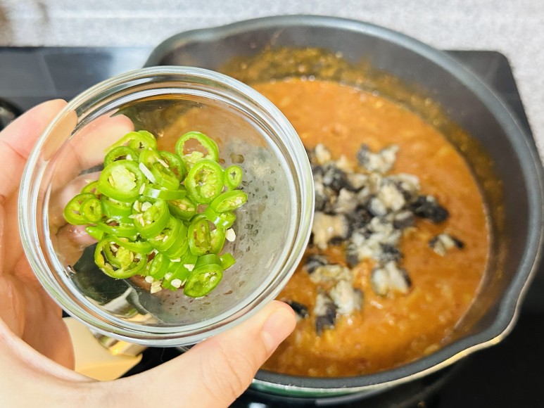 청양고추 1개를 넣고 한 번 잘 섞어주세요