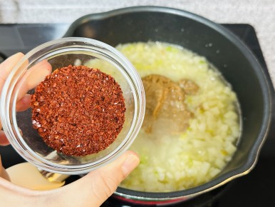 고춧가루 2T, 다진 마늘 1T, 설탕 1t