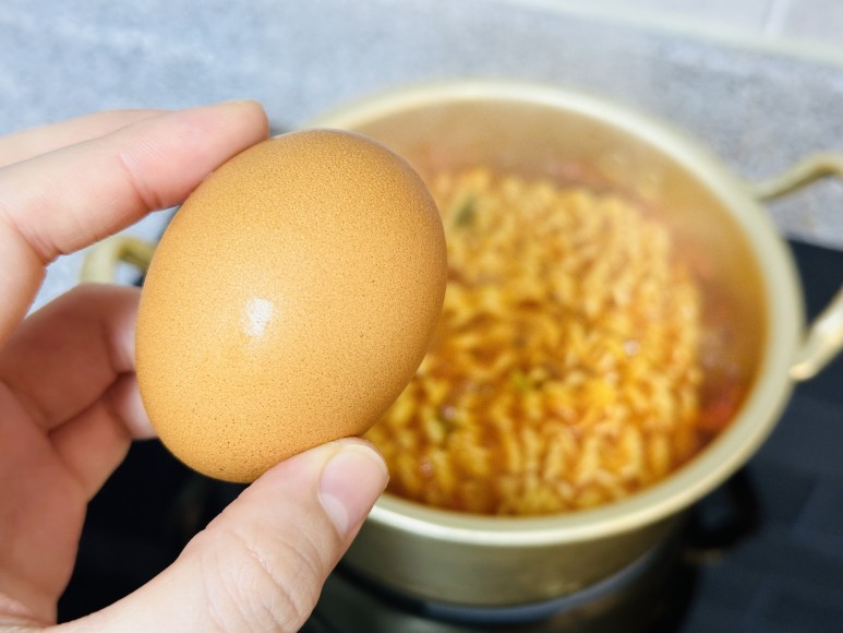 계란 한 개를 넣고 남은 시간 동안 끓여주세요