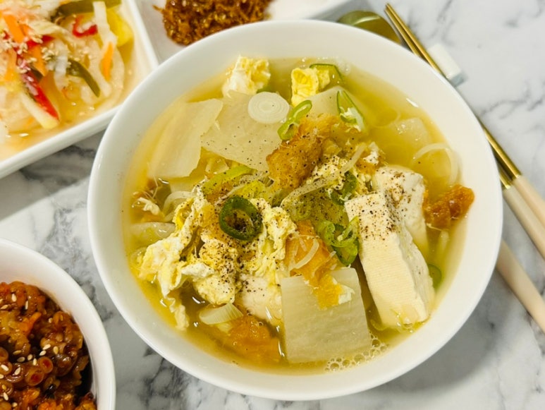 황태, 계란, 두부에 무, 콩나물이 들어가는 국이라서