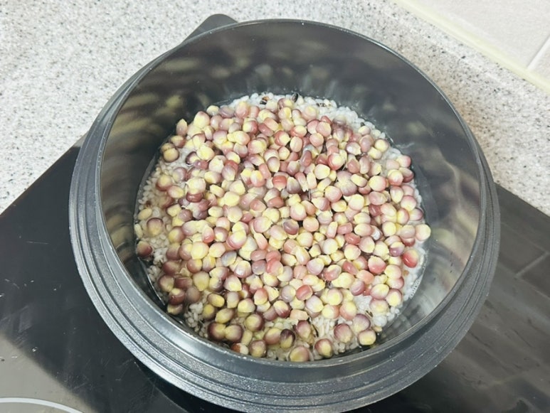 쌀컵 쌀 1.5컵, 찐옥수수 1개