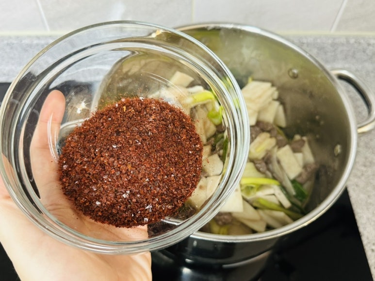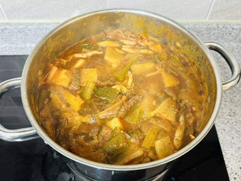 뭉근하게 한 번 더 푹~ 끓여주면 얼큰한 소고기