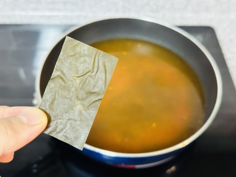 너구리 라면에 있는 다시마를 가장 먼저 넣은 후