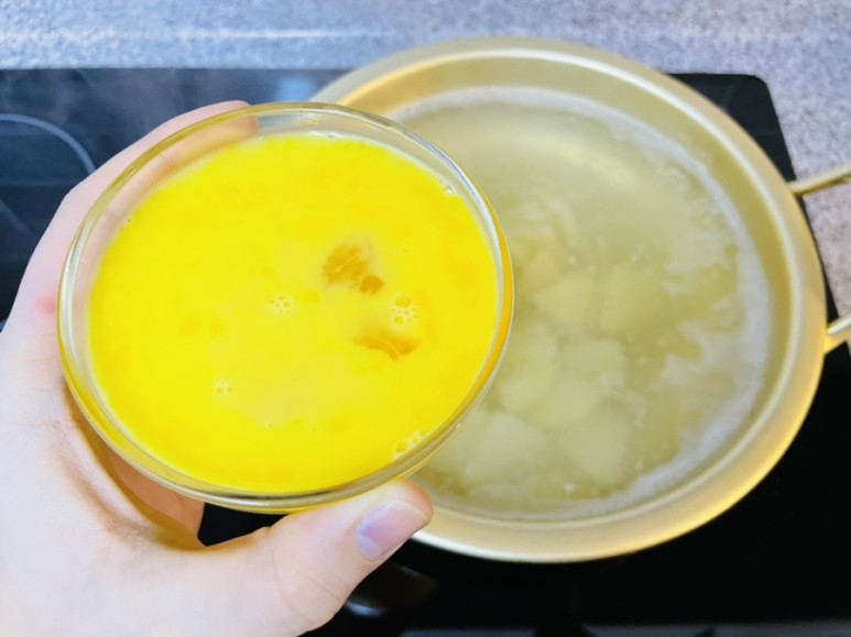 감자 넣고 감자계란국 끓여서 먹었어요~