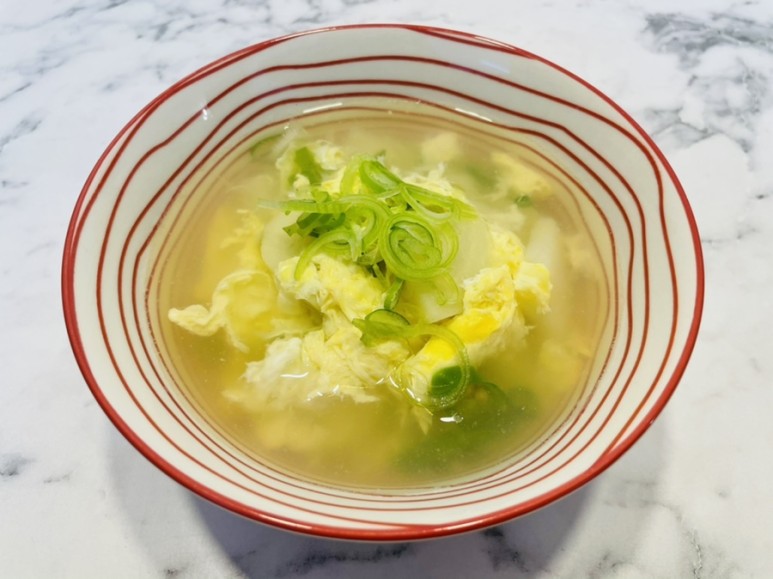 오늘 준비한 음식은 맑은국 종류인 계란국이에요!
